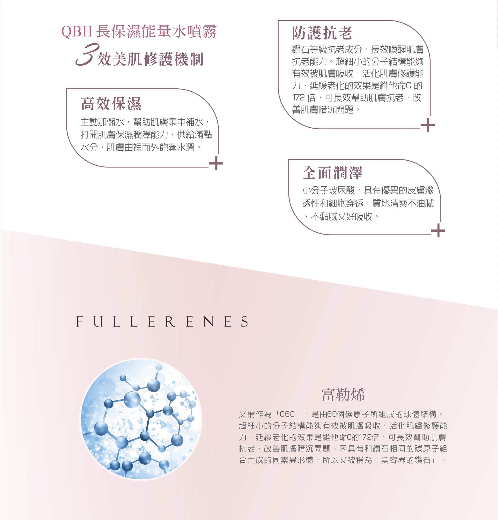 ・防護抗老:富勒烯,又被稱為「美容界的鑽石」,抗氧化力是維他命C的250倍。