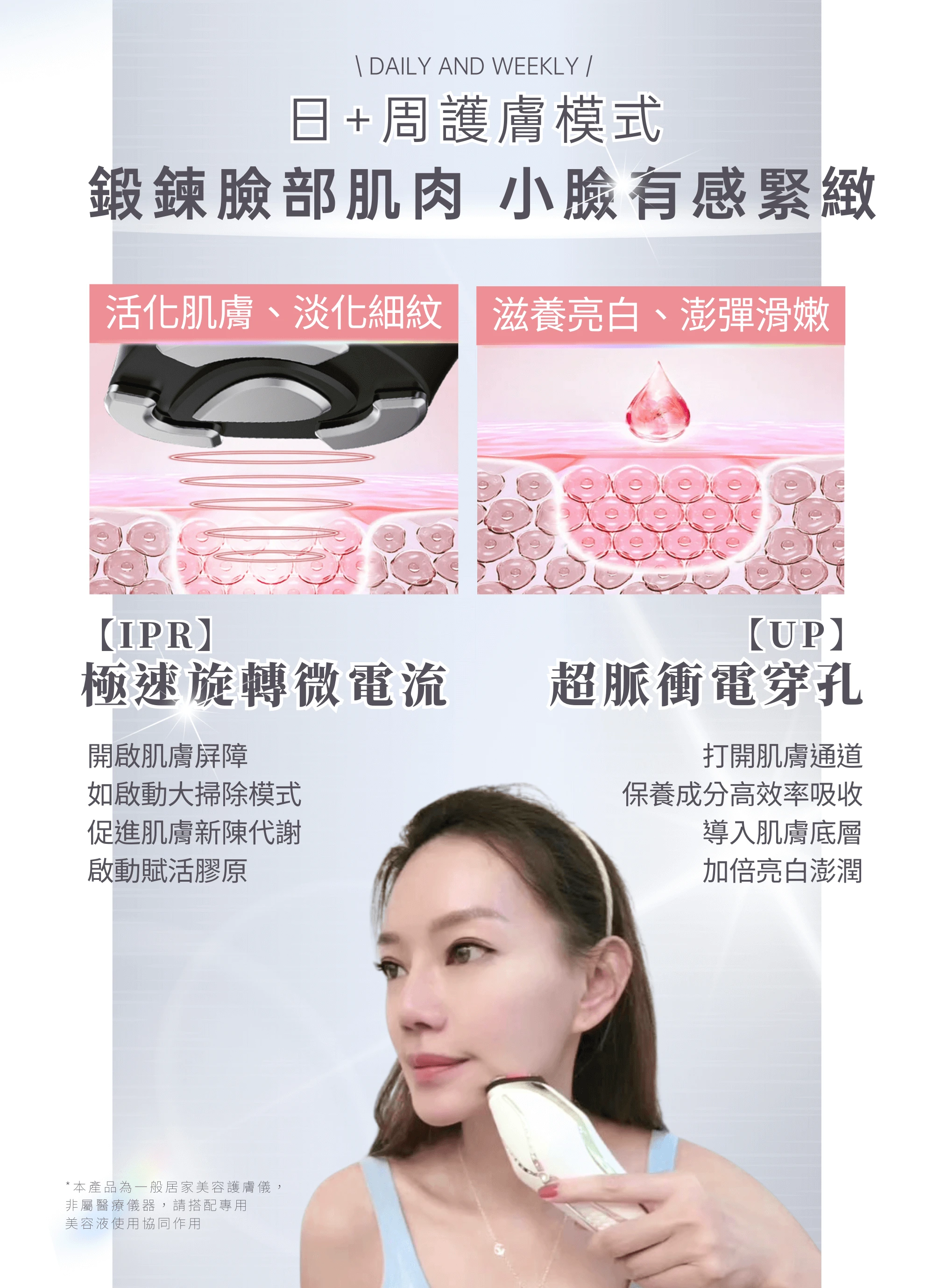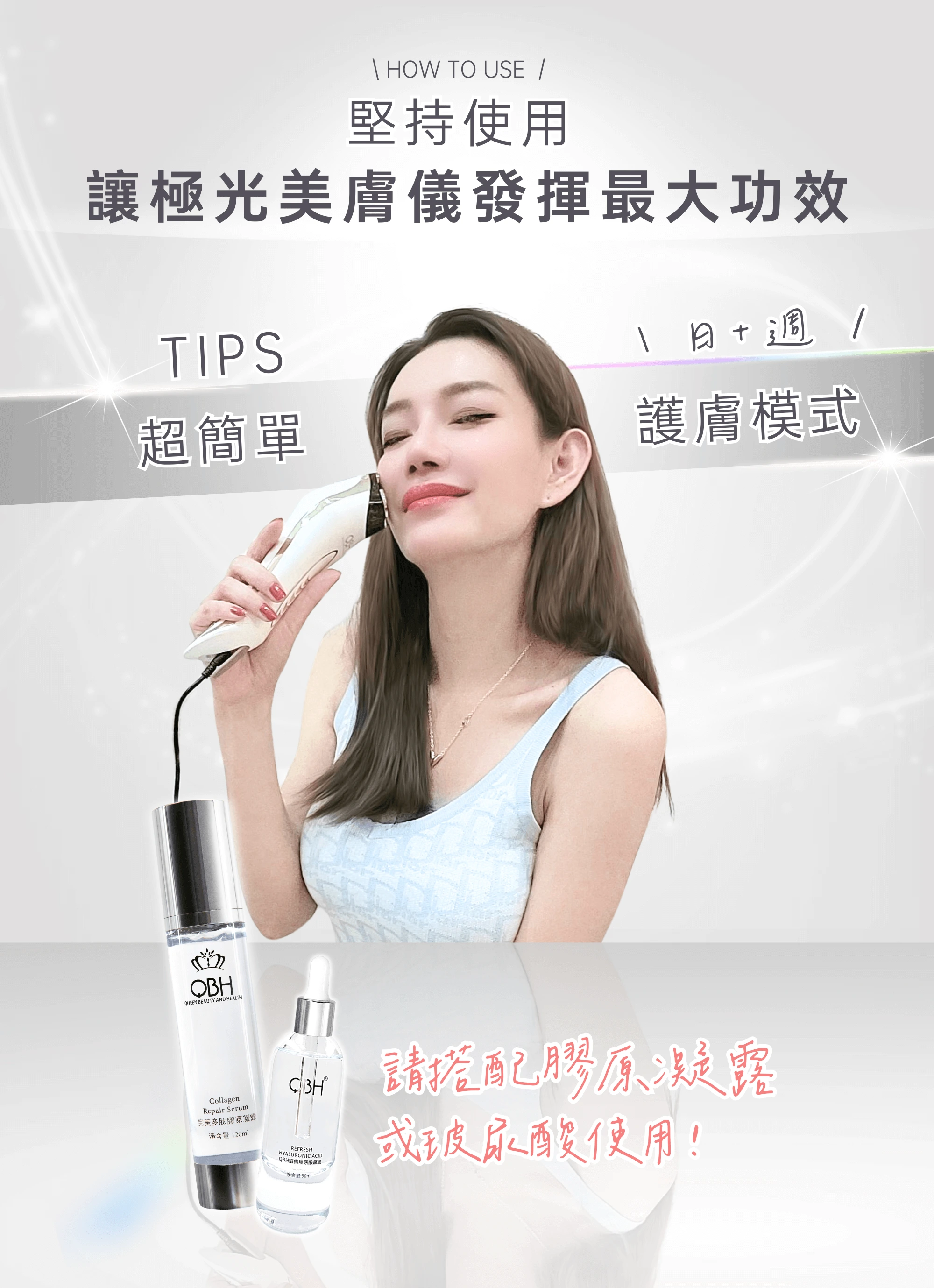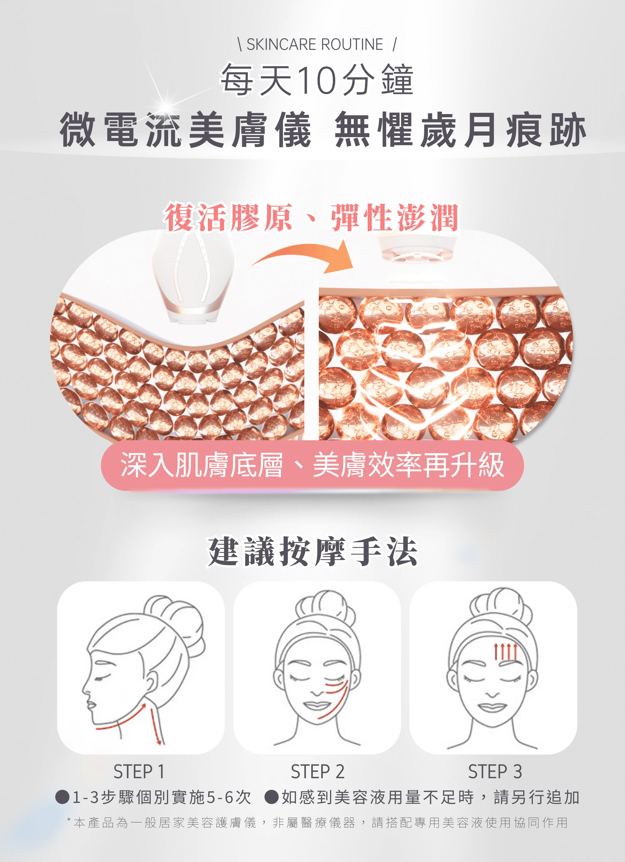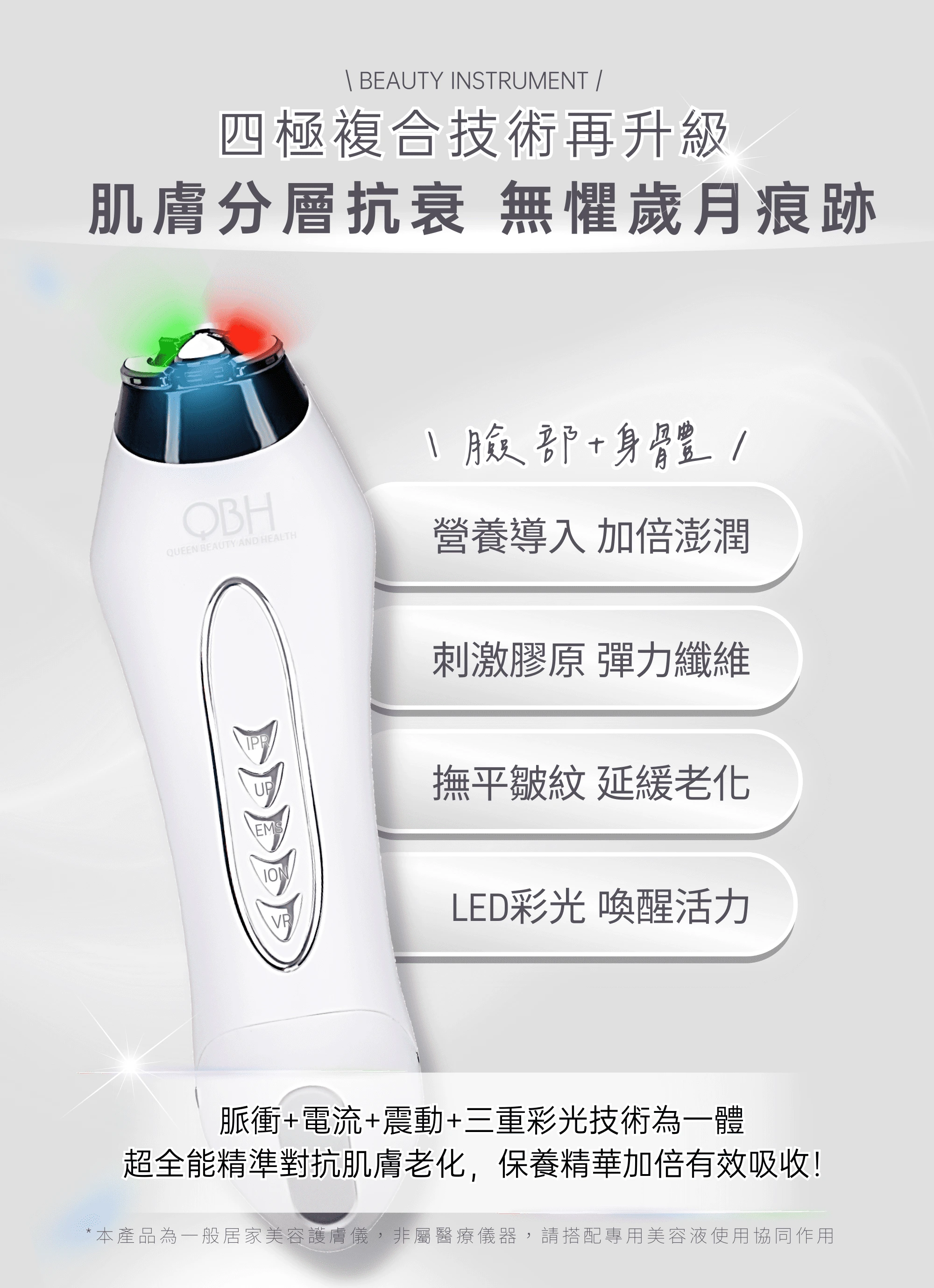 ★享一年保固,非人為因素損壞直接換新機 適用膚質/部位: 全膚質皆適用/可用於臉部、身體護理,搭配專用完美多肽膠原凝露協同作用